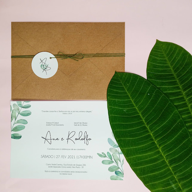 - Envelope: 15 cm x 22 cm em papel kraft 200g (rústico) OU Off set 240g (branco)